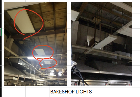 Busted light sa tapat po ng counter, at sa tapat ng aircon tapat ng chiller |