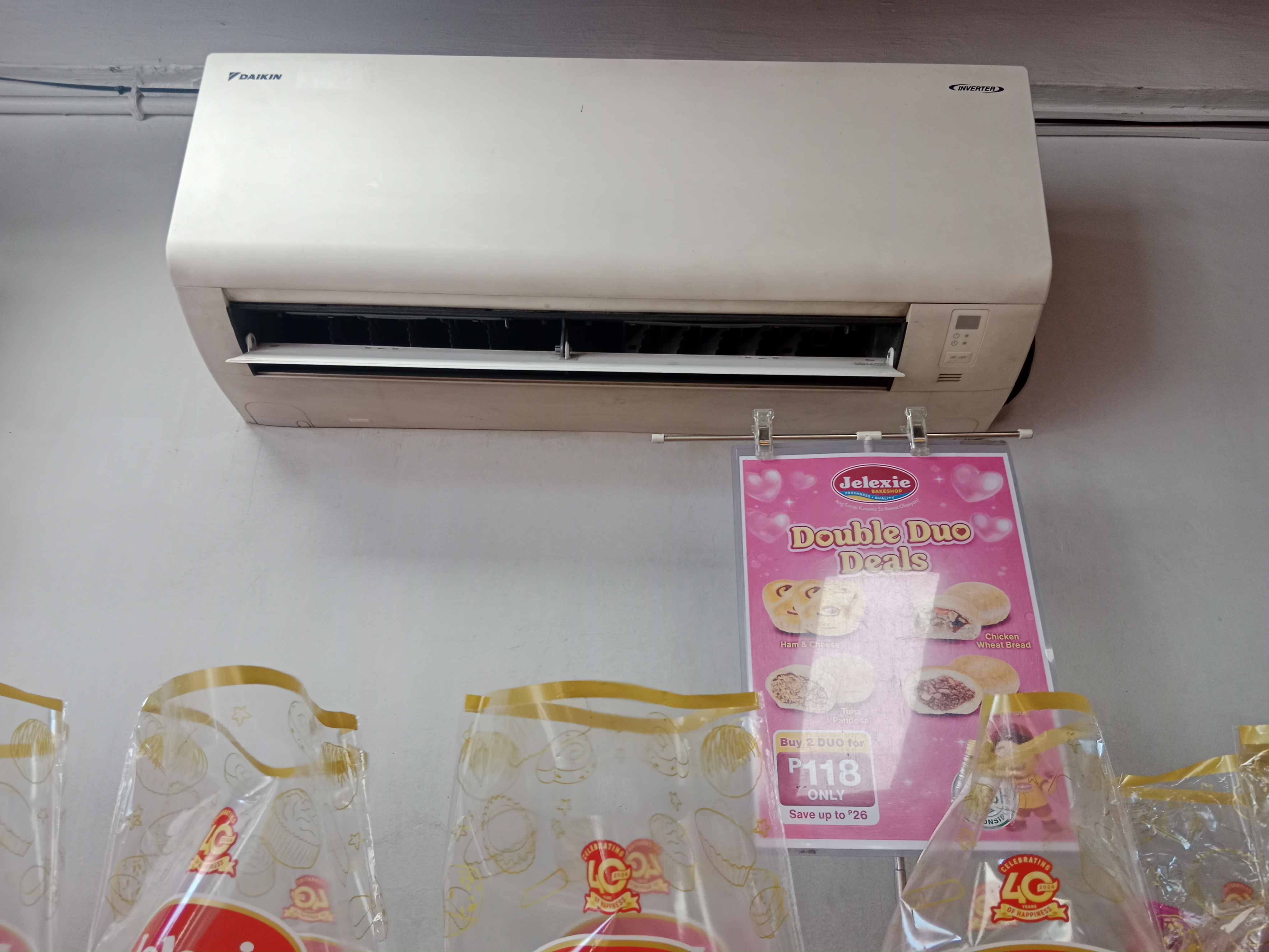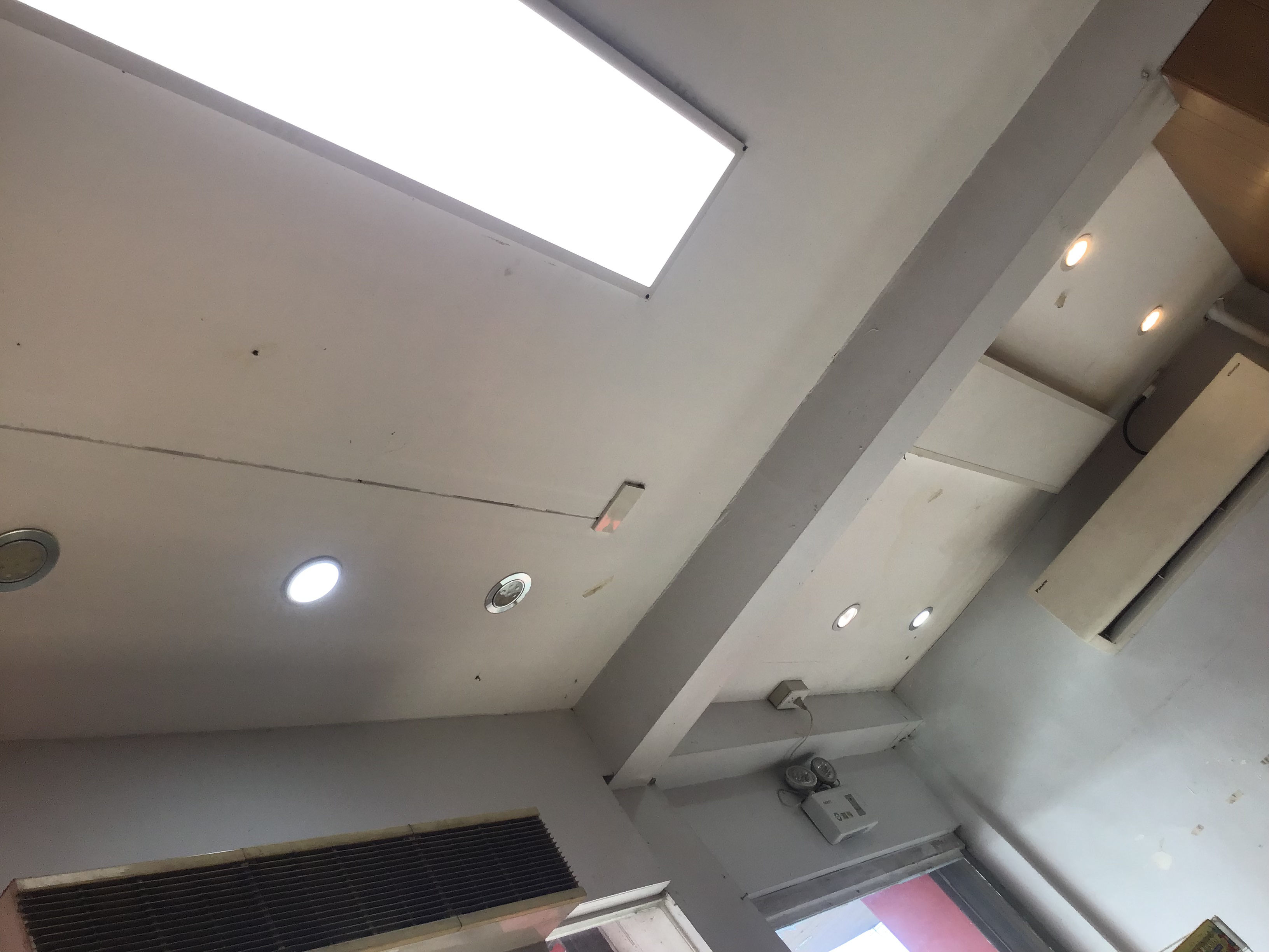 Kisame sa selling area , canopy, sa tapat ng aircon hose - tumutulo kapag umuulan |