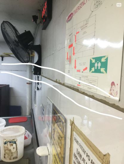 may tumutulo sa may sorting papasok po ng bakeshop sa may prod office |